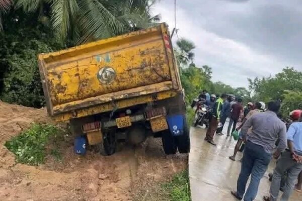கிளிநொச்சி நகரிலிருந்து இரணைமடு நோக்கி தனது மனைவியுடன் உந்துருளியில் பயணித்தவர் வில்சன் வீதி மொட்டை பாலத்திற்கு அருகில் வீதியின் ஓரமாக உந்துருளியை நிறுத்த முற்பட்ட போது அவரை பின் தொடர்ந்து மணலுடன் வந்த ரிப்பர் உந்துருளியை நோக்கி நெருங்கி வருவதனை அவதானித்த மனைவி உந்துருளியிலிருந்து வேகமாக இறங்கி வீதியின் மறுபுறம் ஓடியுள்ளார்.